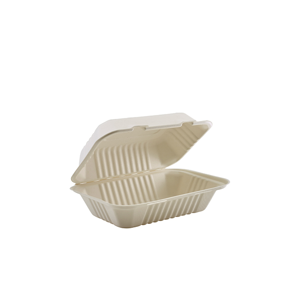 GenWare Compostable Bagasse Hinged Food Container 15 x 23cm/